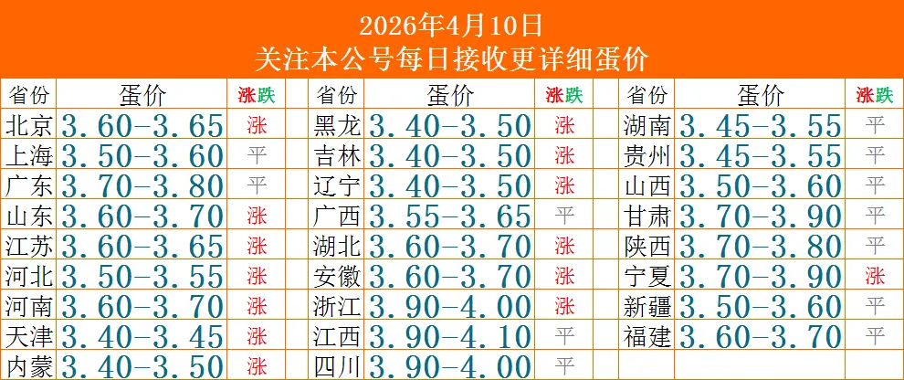 今日鸡蛋价格大涨(2026年4月10日)蛋价未来15天预测