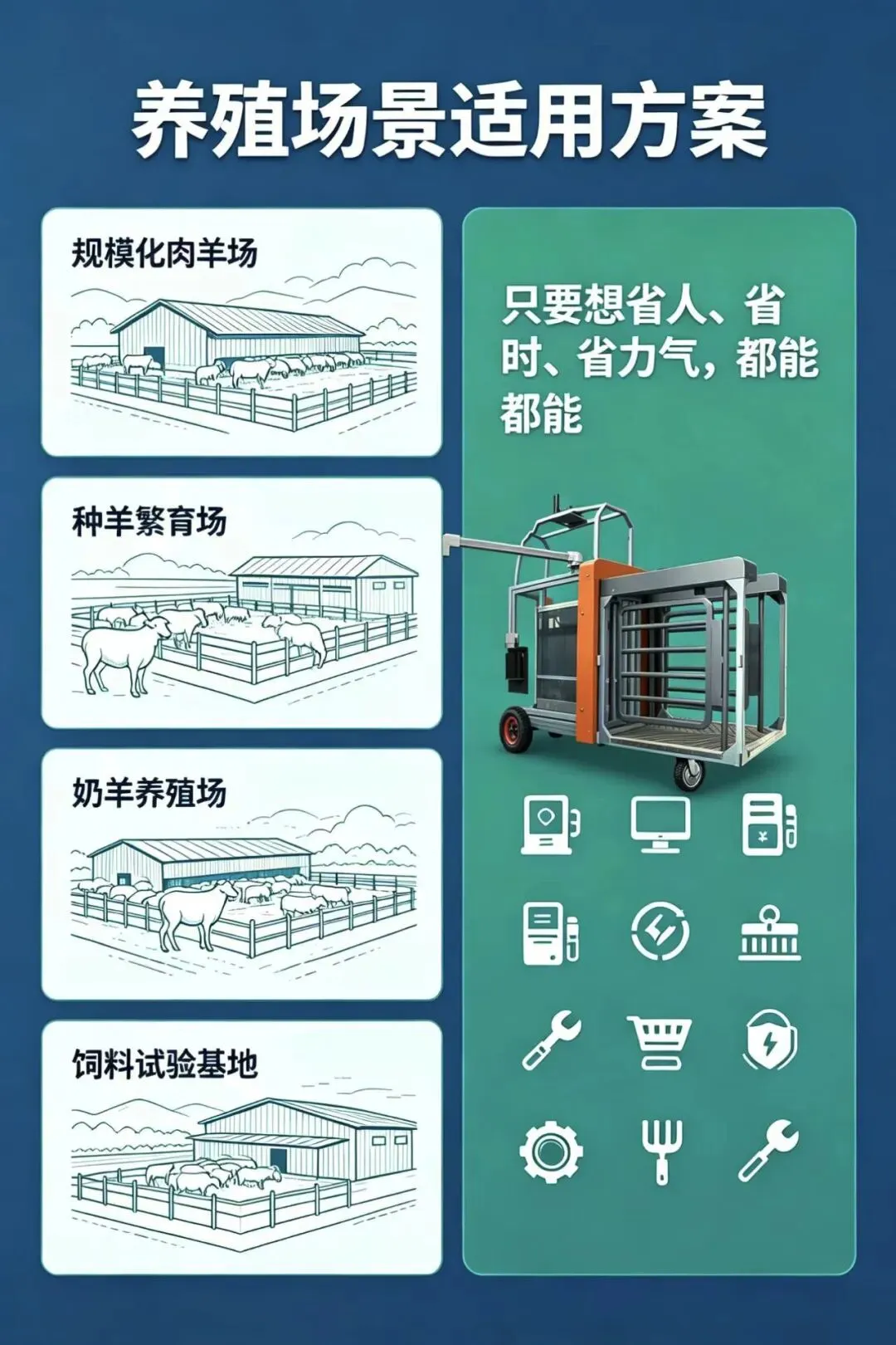 ? 设备全面适配多品类养殖场景:既支持肉羊全流程精细化管理,助力育肥期精准分群、出栏计划制定;也可实现种羊谱系全链路追踪,为良种选育、品种改良提供数据支撑;同时满足饲草料对比试验的精准数据采集需求,科学评估不同配方的饲喂效果;更适配奶山羊体重监控,为产量管理、营养调控提供依据。