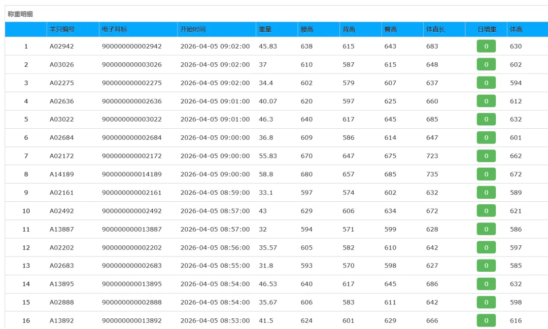? 依托 AI 视觉识别与智能称重技术,设备为每只羊建立全生命周期数字化档案:体重、体尺、日增重、分群历史等核心数据实时同步、一目了然,彻底告别人工台账,实现个体精准溯源与全流程可追溯。