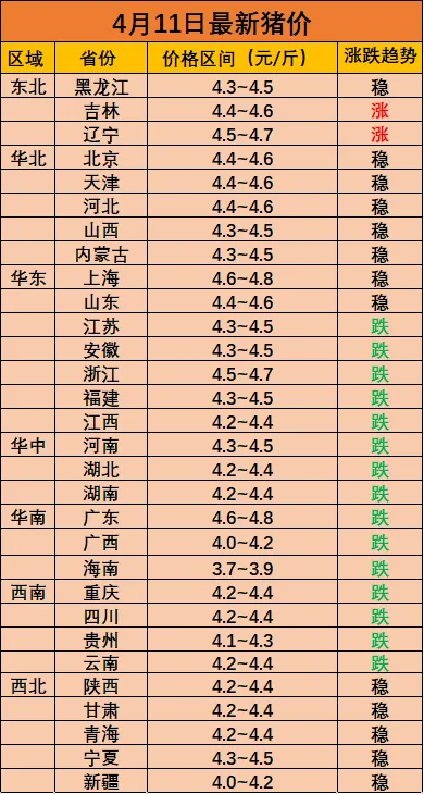 4月11日最新猪价!!!北涨南跌,分化加剧!!!