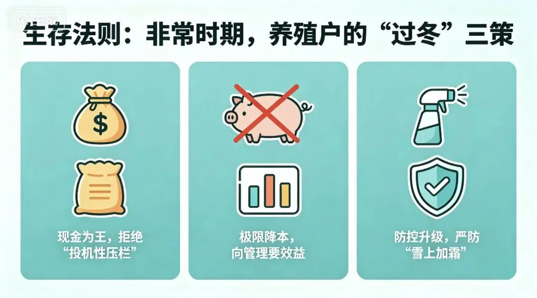 在价格短期内难以V型反转的预期下(预计下半年仅温和回升),养殖户的核心任务不是“赌行情”,而是“保生存”。