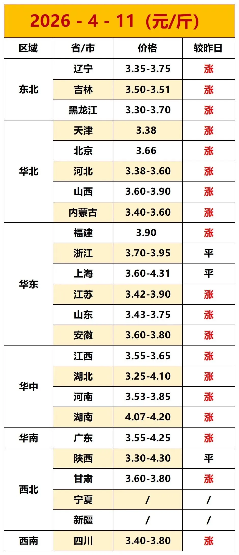 2026年4月11日-全国鸡蛋价格(继续上涨!)