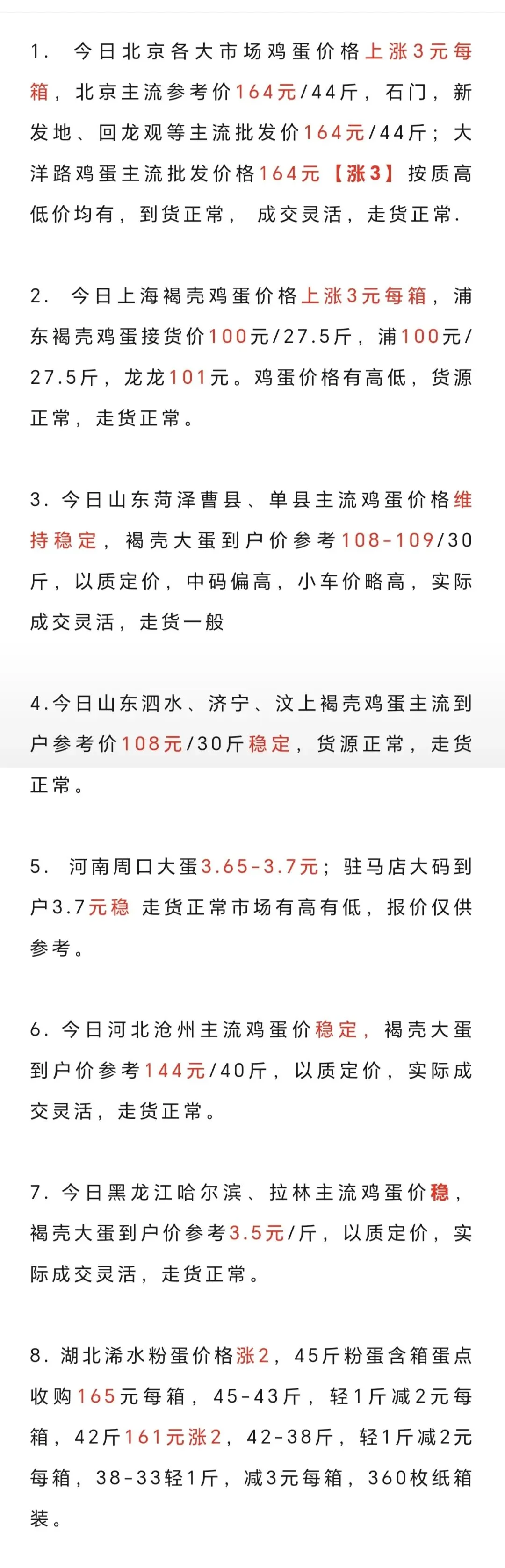 2026年四月12日各地鸡蛋价格 养羊网 2026-04-12 2026年四月12日各地鸡蛋价格 养羊网 2026-04-12 上一篇:(2026年 4月12日)鸡蛋价格最新报价 下一篇:4月12日:贵州、广西、广东鸡蛋价格; 您可能还会对下面的文章感兴趣111: 相关文章 cuc瓜神! 吃野草和玉米杆长大的羊 我靠,点了哈哈哈哈哈哈哈哈哈哈 【猪价震荡】2026.02.05-全国猪价强势反弹上涨!